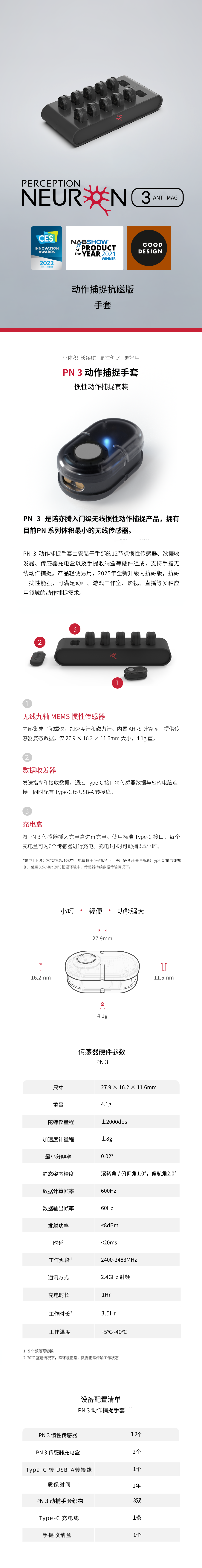 此拓展套件仅适用于“ 诺亦腾 Perception Neuron 3 ”,单独购买无法使用。